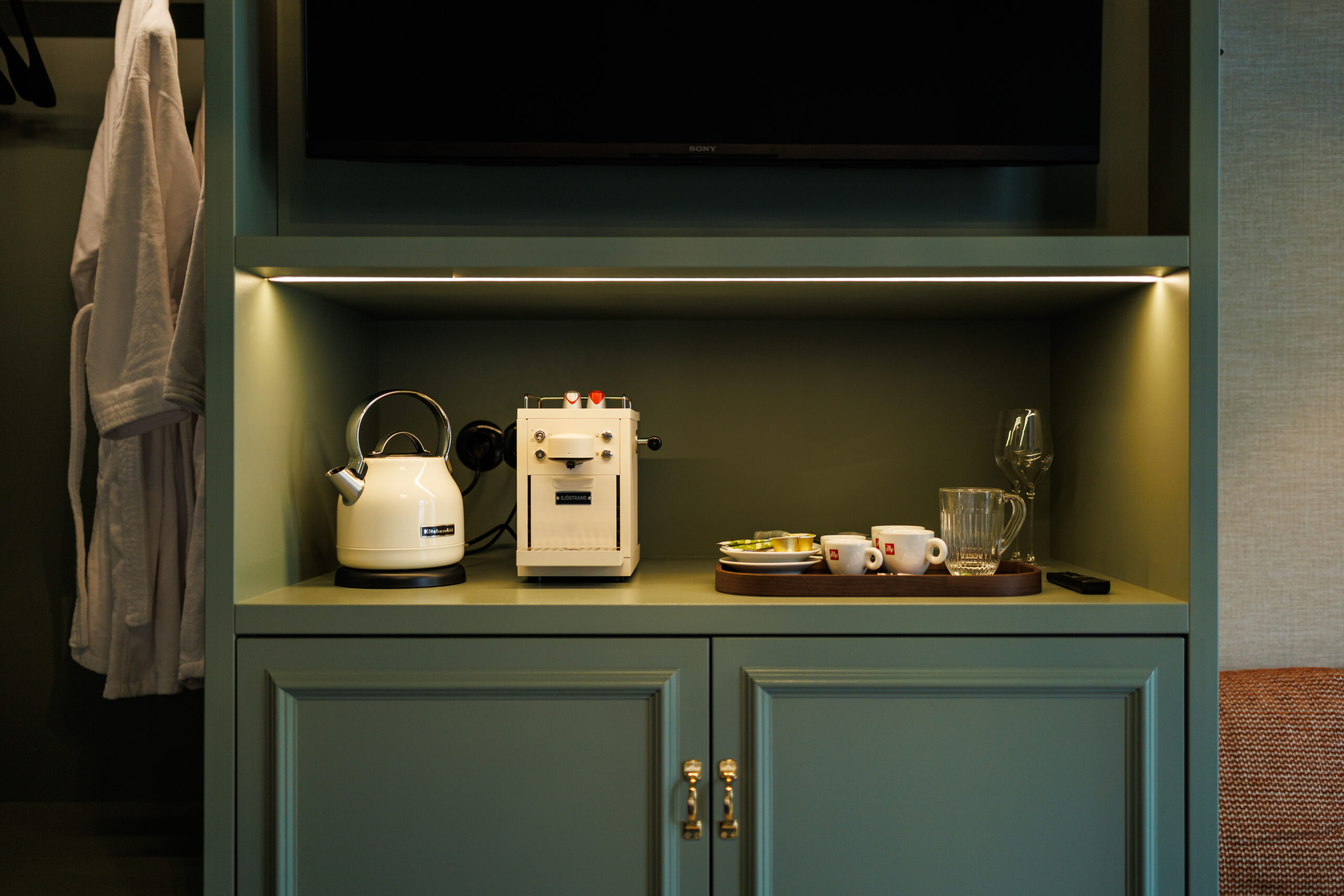 Aan luxe zal het u niet ontbreken, want deze kamer heeft een gesloten badkamer met half-vrijstaand ligbad en inloopdouche, flatscreen TV, minibar, kluis, koffie- en theecorner en garderobe.